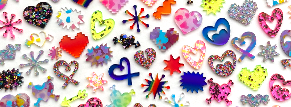 - Pastel Dot – Bright fun pastel dots, pink, yellow and white (similar to our polkadot acrylics) (different back/front)