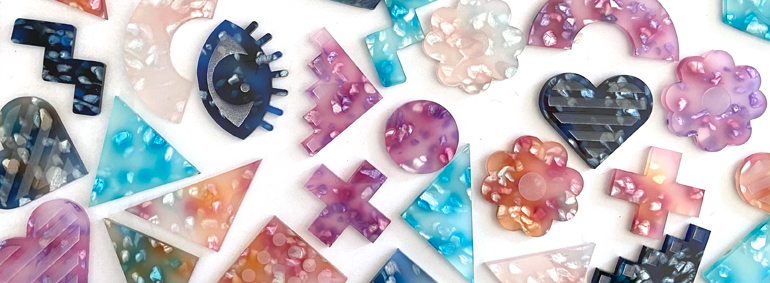 High gloss finishes both sides. Lovely chunky pieces of glitter foil throughout a coloured (translucent) base. The front side has more detail than the back side.